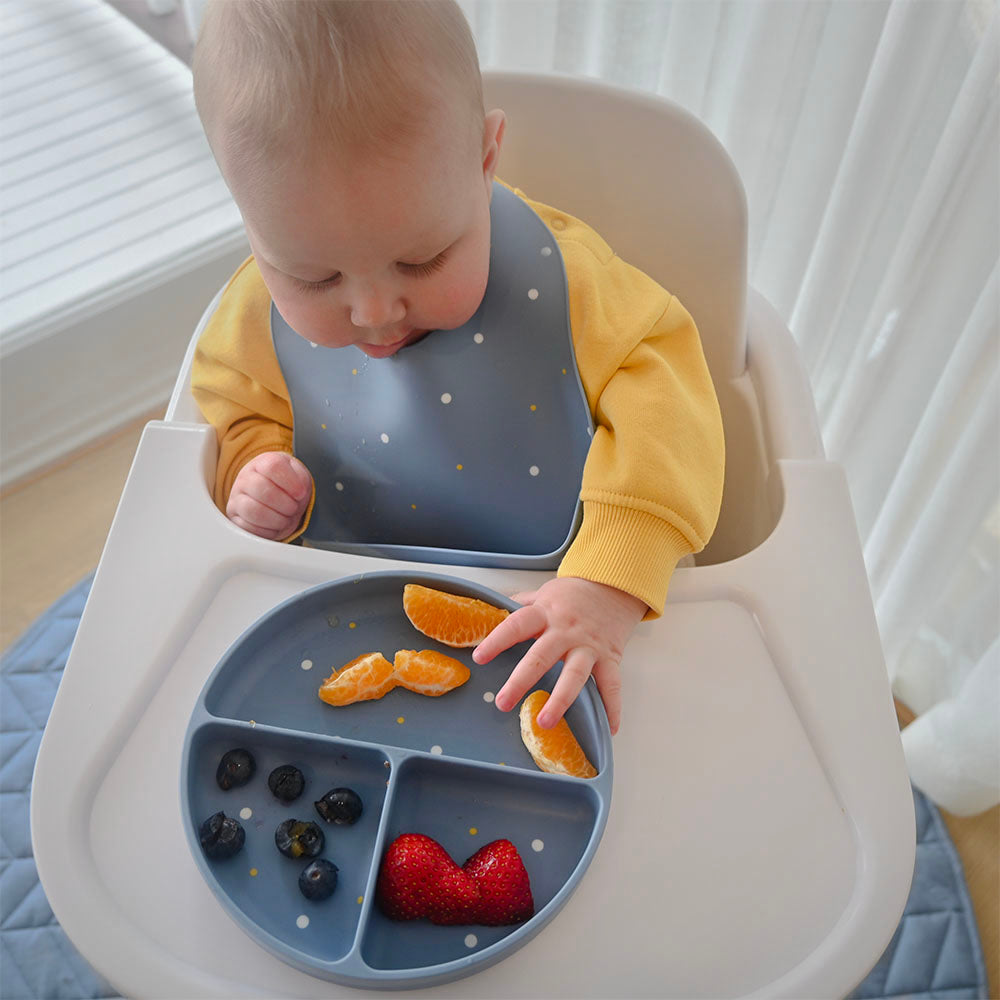 Unit price perMake mealtime fun with this adorable 100% silicone divider plate. Each plate is individually hand inlayed, making every plate unique and special. Featuring a suction base, it suctions to most smooth surfaces to help minimise spills and messes as baby learns to self-feed. Divided into three sections to help offer a variety of foods at mealtimes, this unique plate is also microwave and dishwasher safe making reheating and cleanup a breeze.