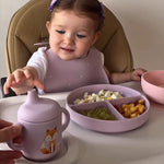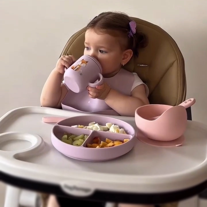 100% food grade silicone includes all the essentials your little one will need at mealtimes. Microwave and dishwasher safe, make reheating and cleanup a breeze.
