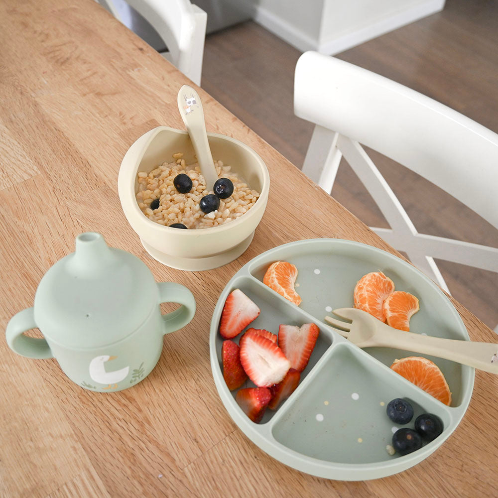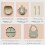 100% food grade silicone includes all the essentials your little one will need at mealtimes. Microwave and dishwasher safe, make reheating and cleanup a breeze.
