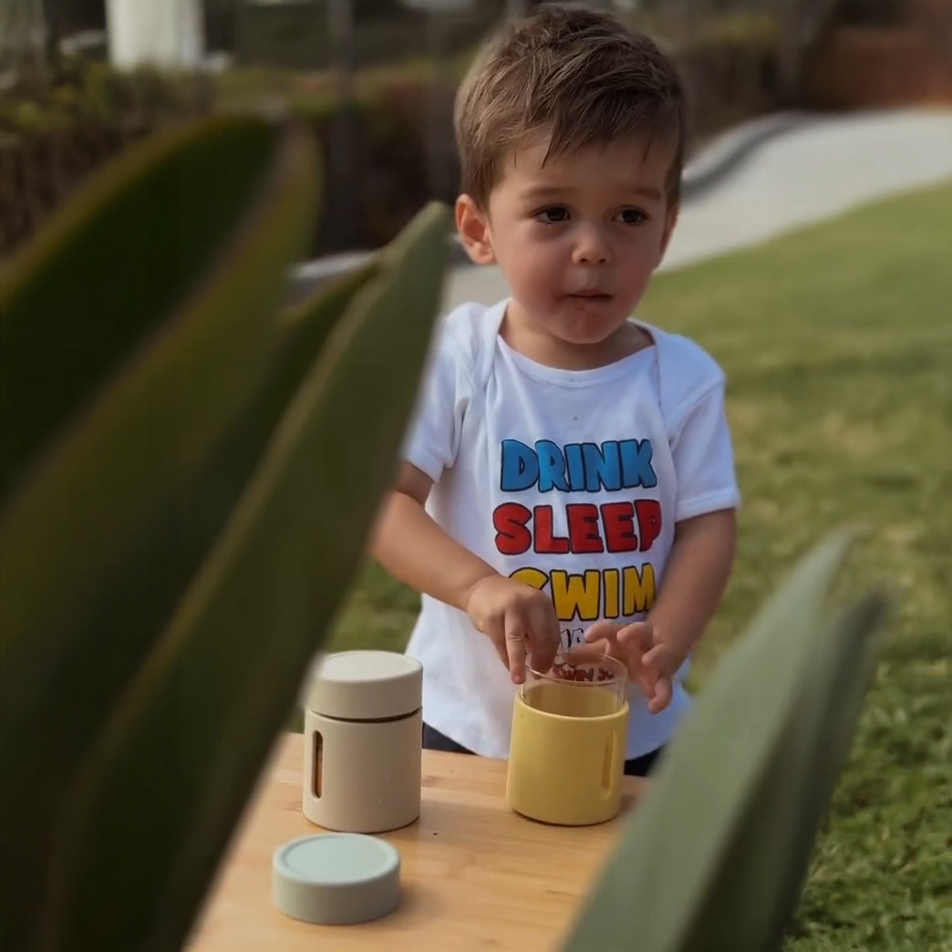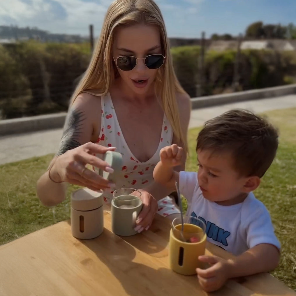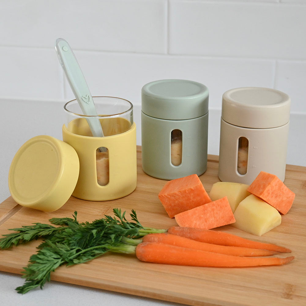 Silicone Glass Food Jar (Beige/Sage/Straw)